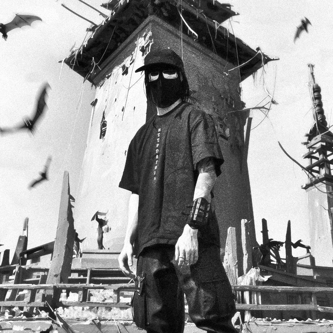 - A red Daemon QR Code print is placed at the bottom left of the garment.